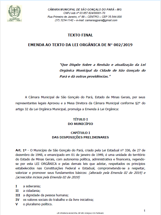 DE SÃO GONÇALO DO PARÁ/MG